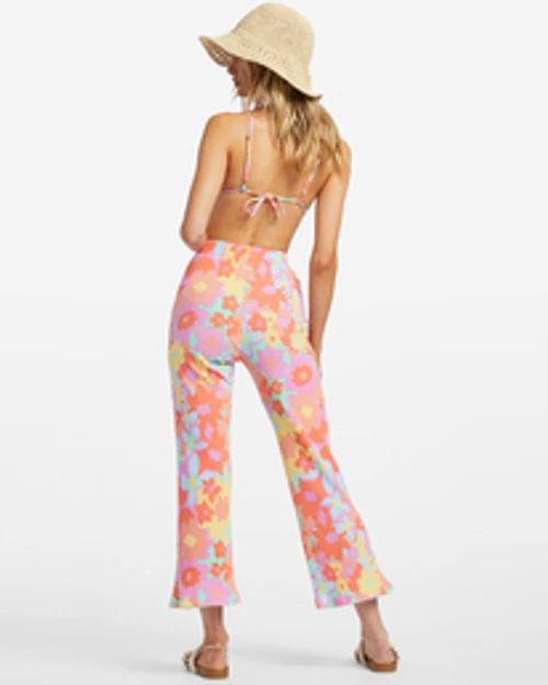 Made in a soft and stretchy ribbed knit-blend fabric, this Sundaze Collection printed pant has a high-rise waist and a slightly-flared cropped leg. A perfect statement piece (or make it a set with the matching top!)